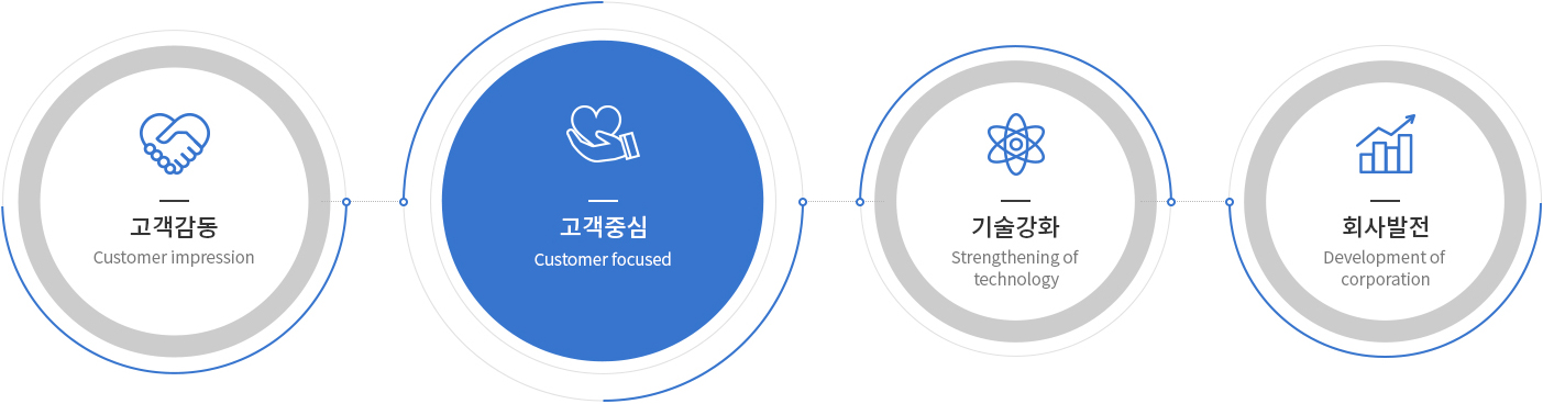 “기업이 중심은 고객이다” 라는 경영이념을 가지고 고객감동을 위한 신뢰를 바탕으로